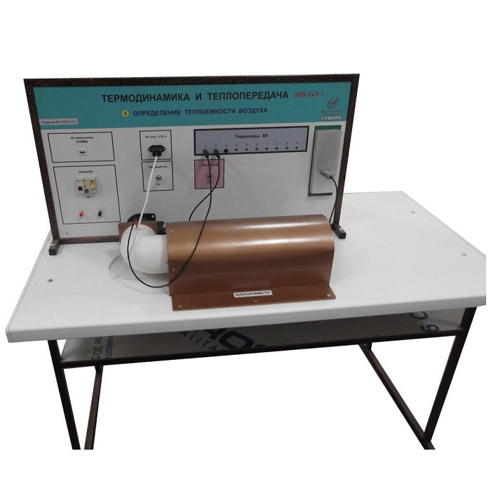 Реальный процесс моделируется с помощью проточного калориметра с выводом задаваемых параметров (напряжения и силы тока в цепи нагревателя, расхода воздуха через калориметр) и измеряемых (температура воздуха на входе и выходе из калориметра) на монитор.